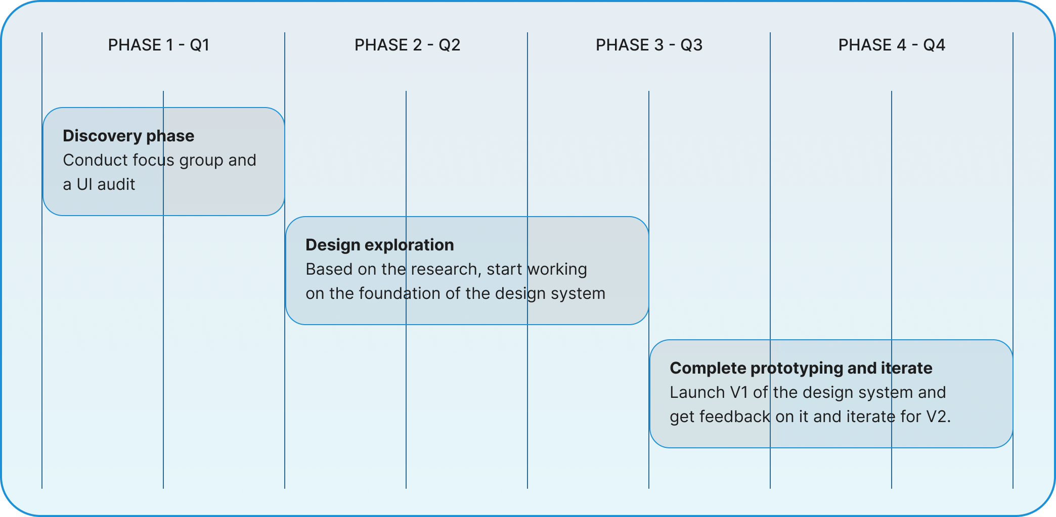 It was important to adopt an iterative design and development process in order to handle the complexity of the components and focus on the MVP. So, I split the project into three parts: V1 for Q2 and V2 for Q4.