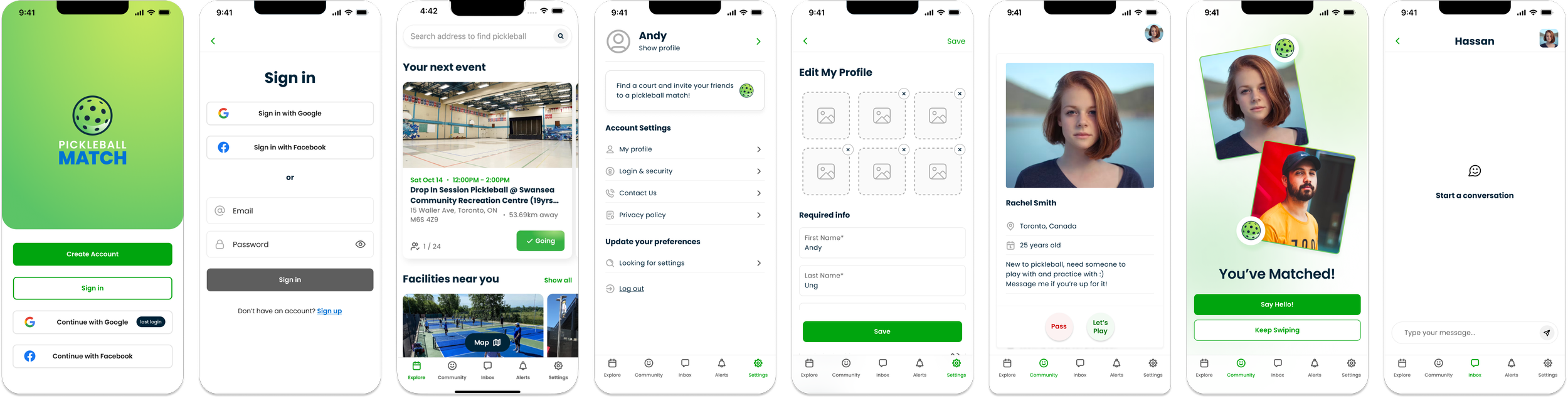 Extensive secondary research was conducted to build Pickleball Match, drawing inspiration from popular platforms like Airbnb, Meetup, Hinge, and other social, dating, and community apps.